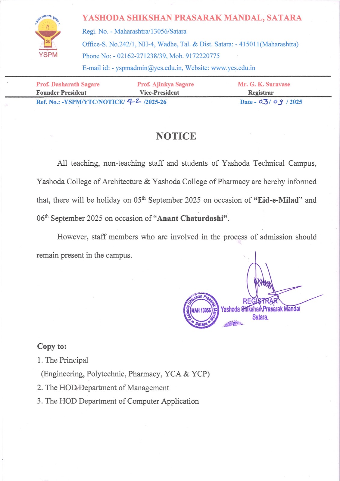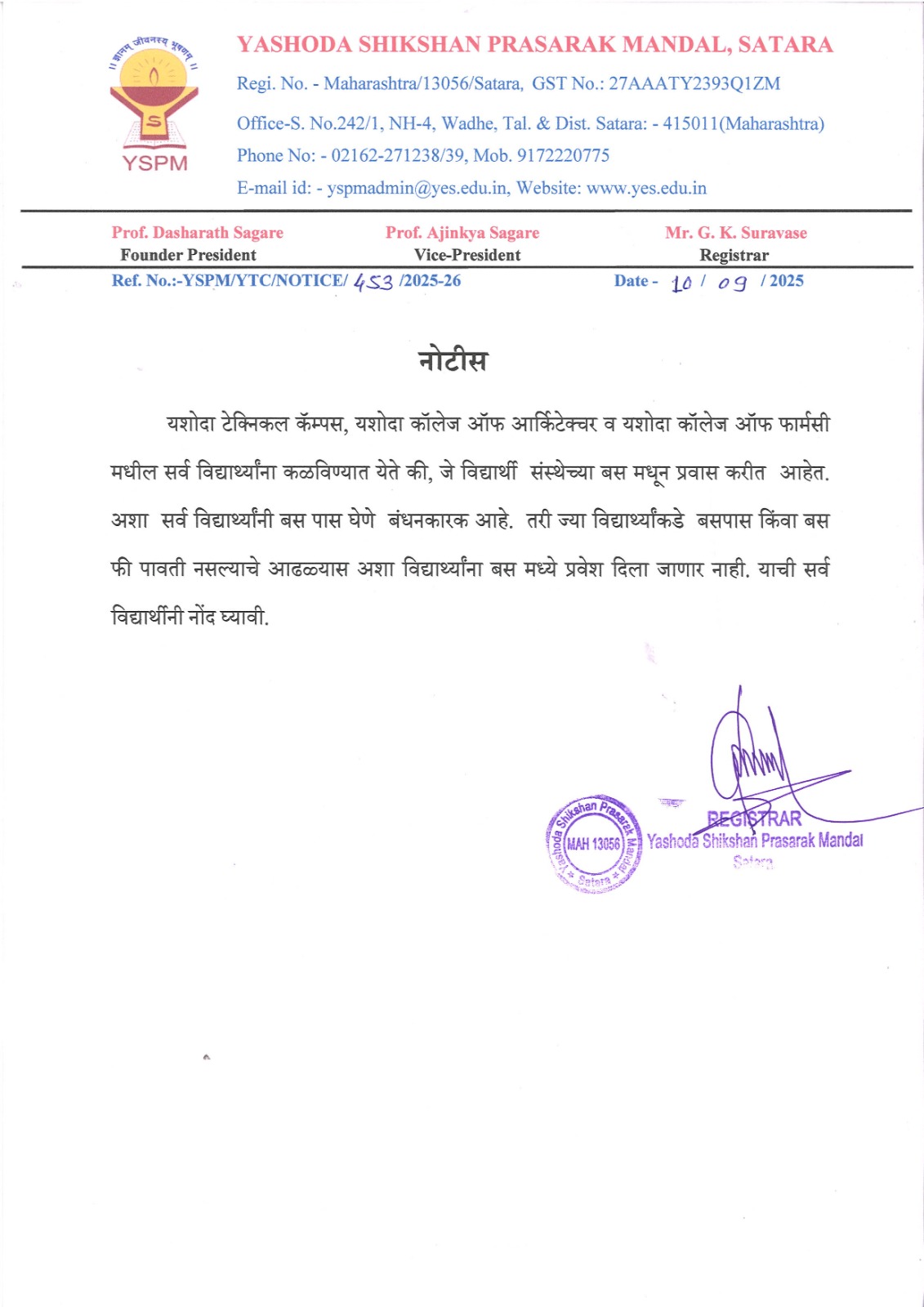 Notice - All SC Students - YSPM. |