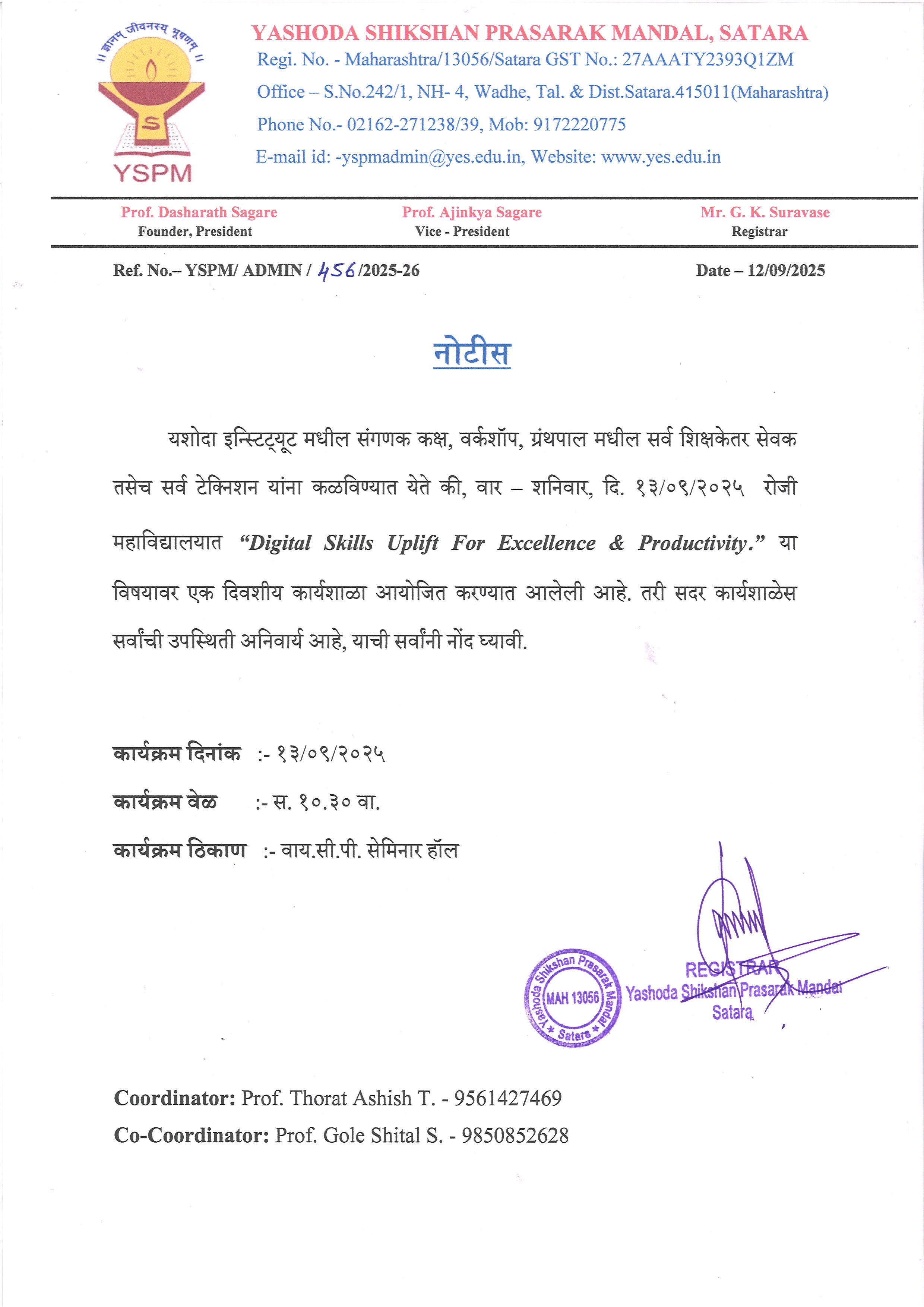 notice - Non Teaching Staff - Digital Skills Uplift for Excellence & Productivity - कार्यशाळेबाबत |