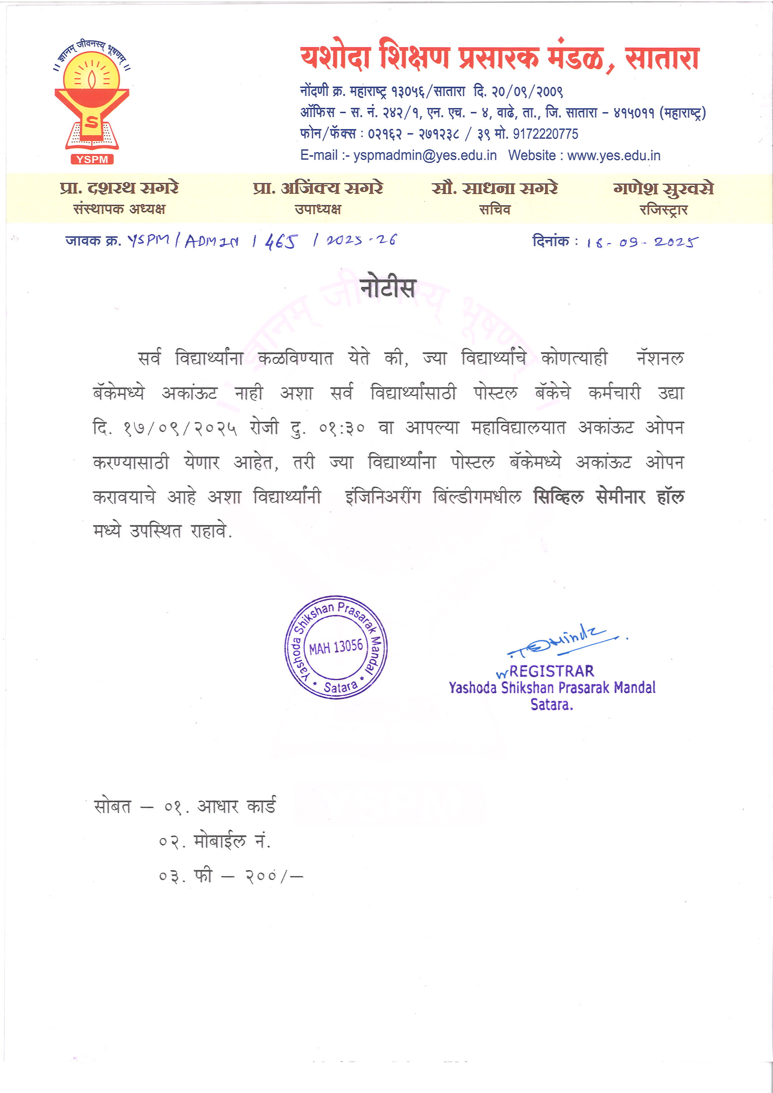 Notice - Bank Account Open करणेबाबत |