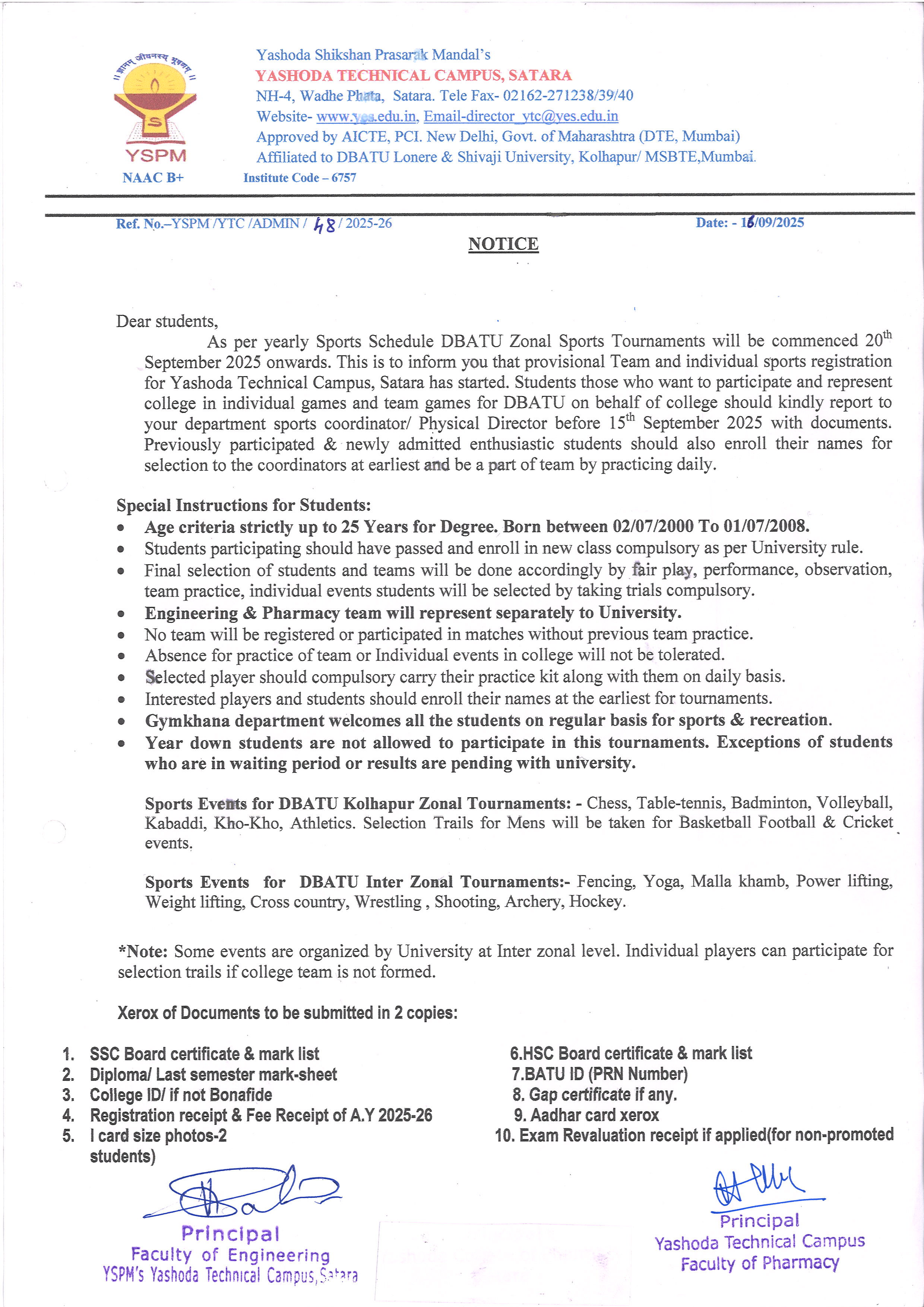 Notice - DBATU Zonal Sports |