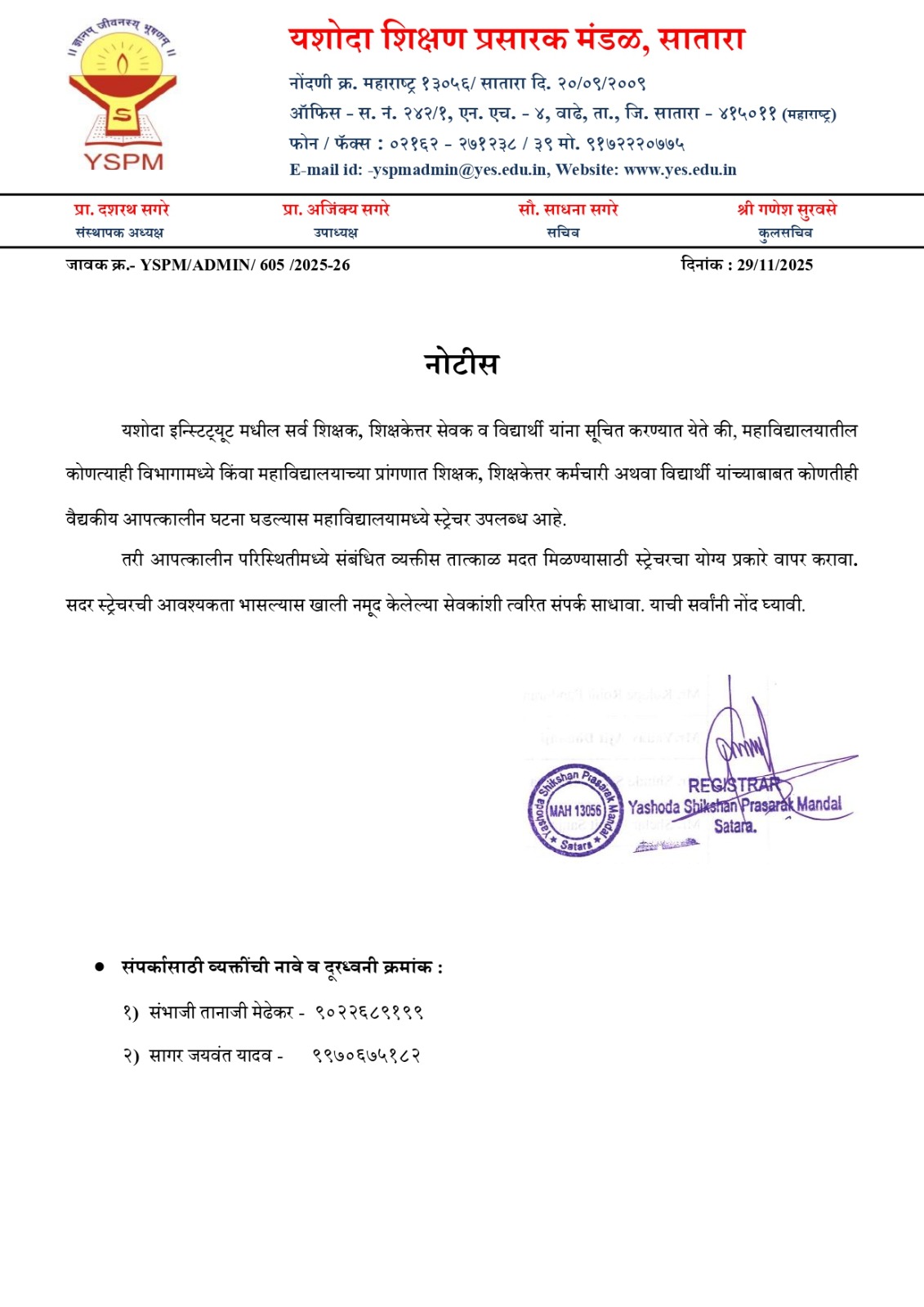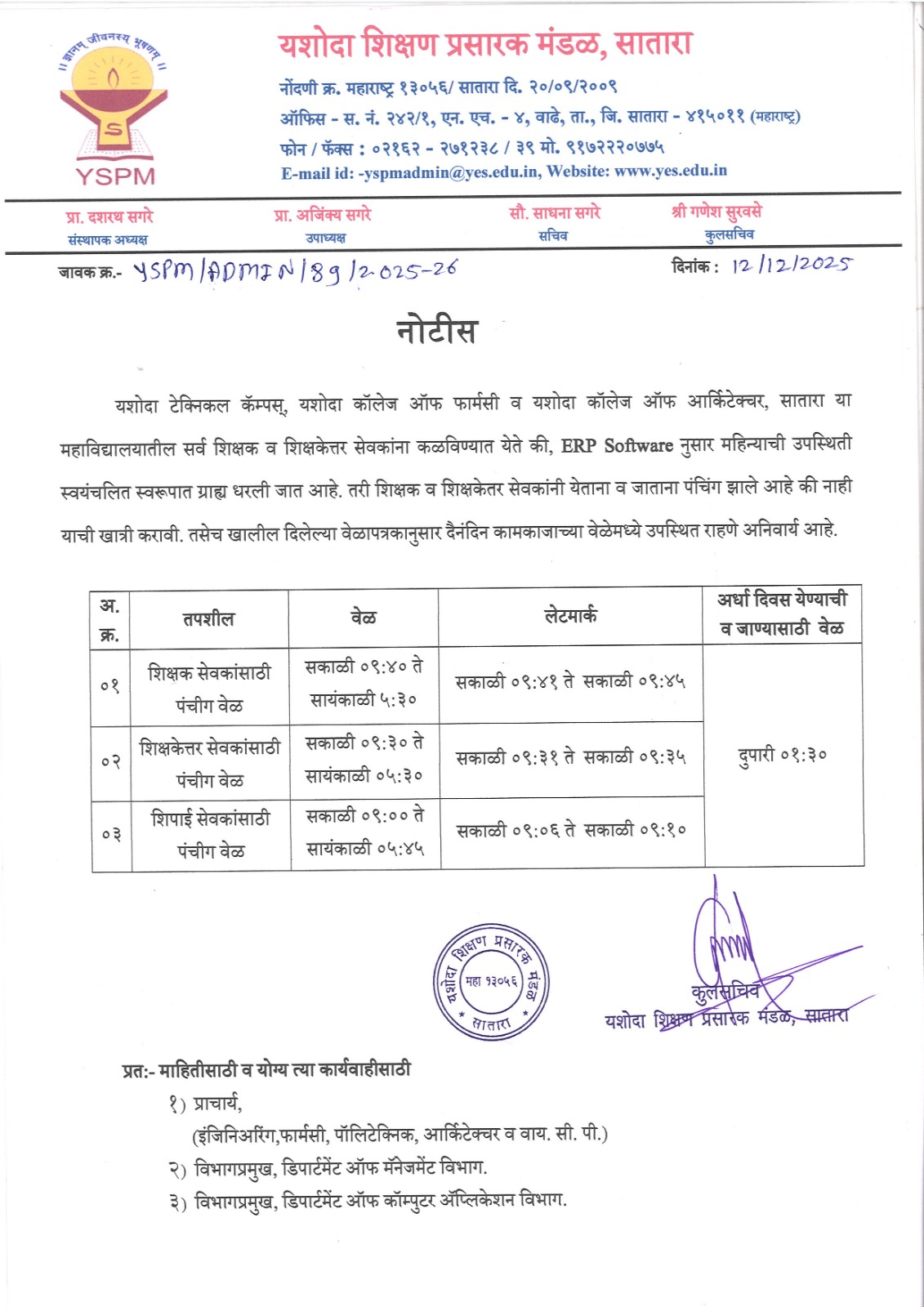 नोटीस सर्व शिक्षक व शिक्षकेत्तर सेवक - महाविद्यालयात शैक्षणिक वर्ष २०२५-२६ प्रवेश प्रक्रीये बाबत |
